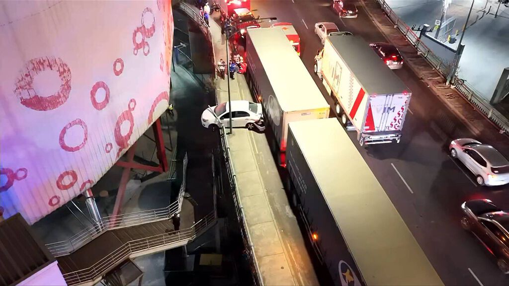 Las investigaciones por este caso recién comenzaron, pero de manera preliminar se sabe que el auto quedó colgando del puente de la avenida Ceylán, luego de ser impactado por un tráiler.